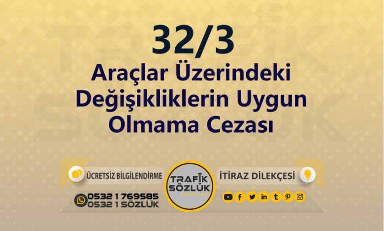 Kısaca 32/3: araçlar üzerindeki değişikliklerin uygun olmama cezası denir.